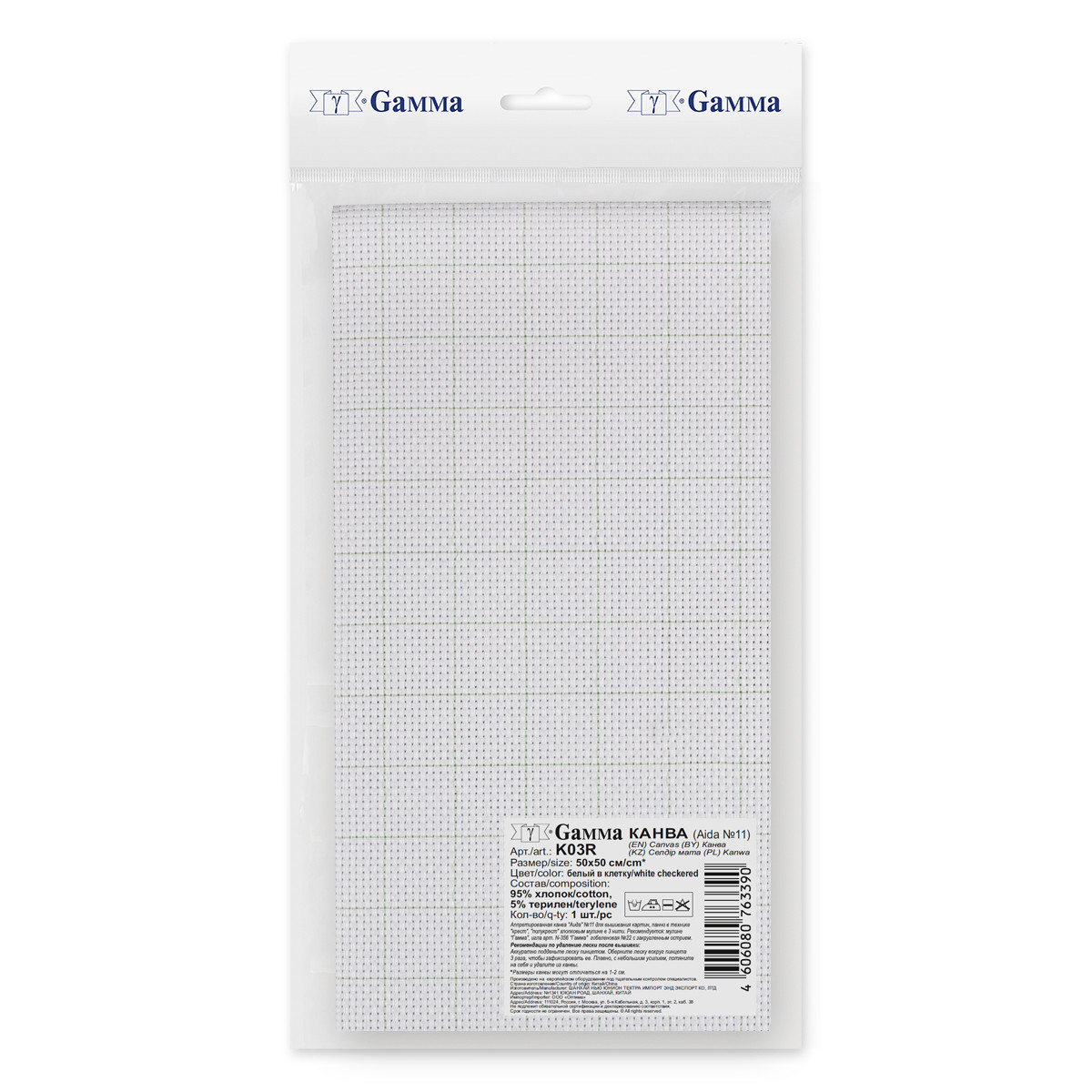 Канва K03 " Gamma" Aida №11 100% хлопок 50 х 50 см ± 2 см белый